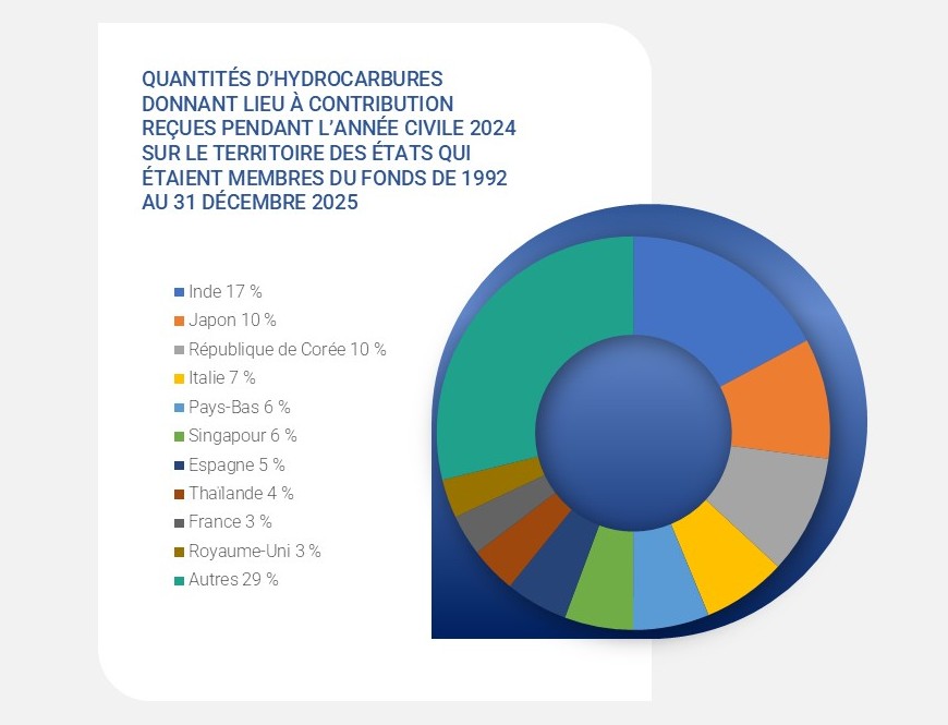 Ce diagramme fournit un aperçu des quantités d’hydrocarbures déclarées par les États Membres du Fonds de 1992 pour l’année 2024.